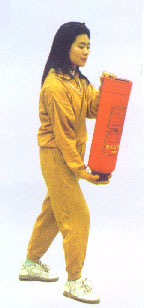 1、右手拖着压把,左手拖着灭火器底部,轻轻取下灭火器
