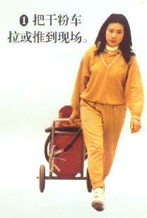 6、在距火焰二米的地方,喷射干粉覆盖整个燃烧区
